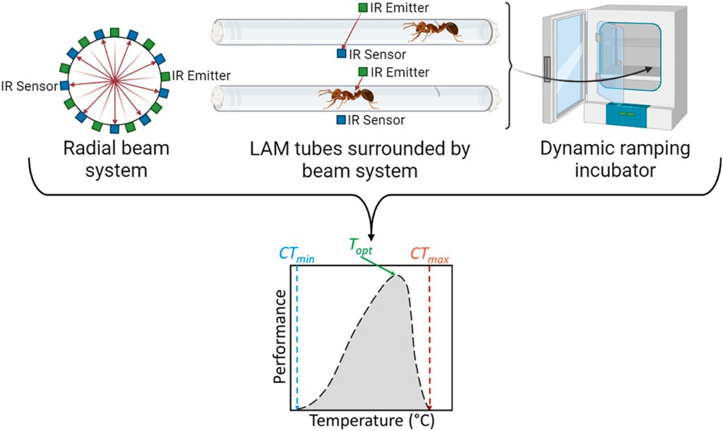 Current methods for measuring the thermal limits of small ectotherms (like insects) focus exclusively on thermal extremes. This paper advances beyond this using locomotor activity monitoring, which generates continuous, objective and higher-throughput thermal data, with ants serving as the focal organism in the study. This will advance studies of how climate change impacts invertebrates and the ecosystems they support.