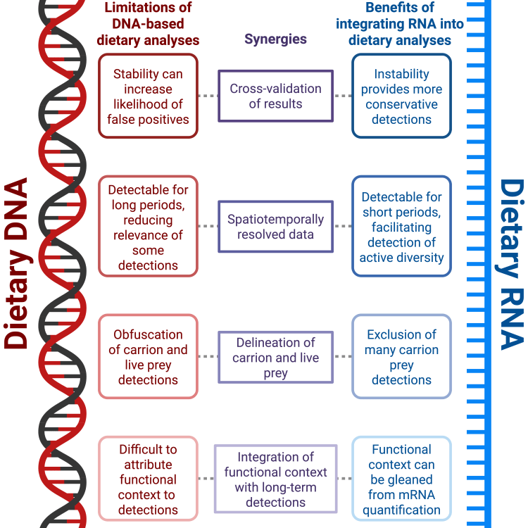 Check out our new preprint, “Dietary RNA: diagnostic and functional RNA offer a potential paradigm shift for molecular dietary analyses“, published on the Open Science Framework Preprints repository. This work, which proposes and describes the conceptual underpinnings of applying RNA analysis to trophic ecology, is the outcome of some discipline-hopping workshops that Jordan got funding for NERC from a couple of years back. The ideas have since been enhanced through collaboration with Michael Traugott and his group at Universität Innsbruck. The preprint signposts some exciting directions for FERG to explore in the coming months and years.