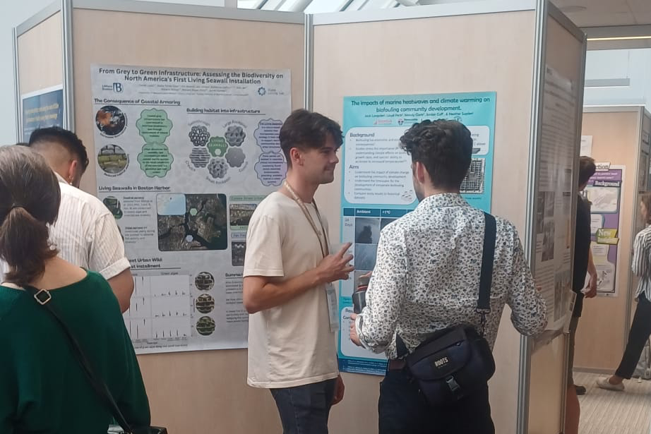 Jack took to the International Temperate Reefs Symposium in Brest, France, where he presented a poster titled “The impacts of marine heatwaves and climate warming on biofouling community development.” Jack’s panels, featured in a recent news post, are thriving (or at least the biofouling organisms that live on them are) out in the ocean, so he had plenty of exciting things to show the academic community!