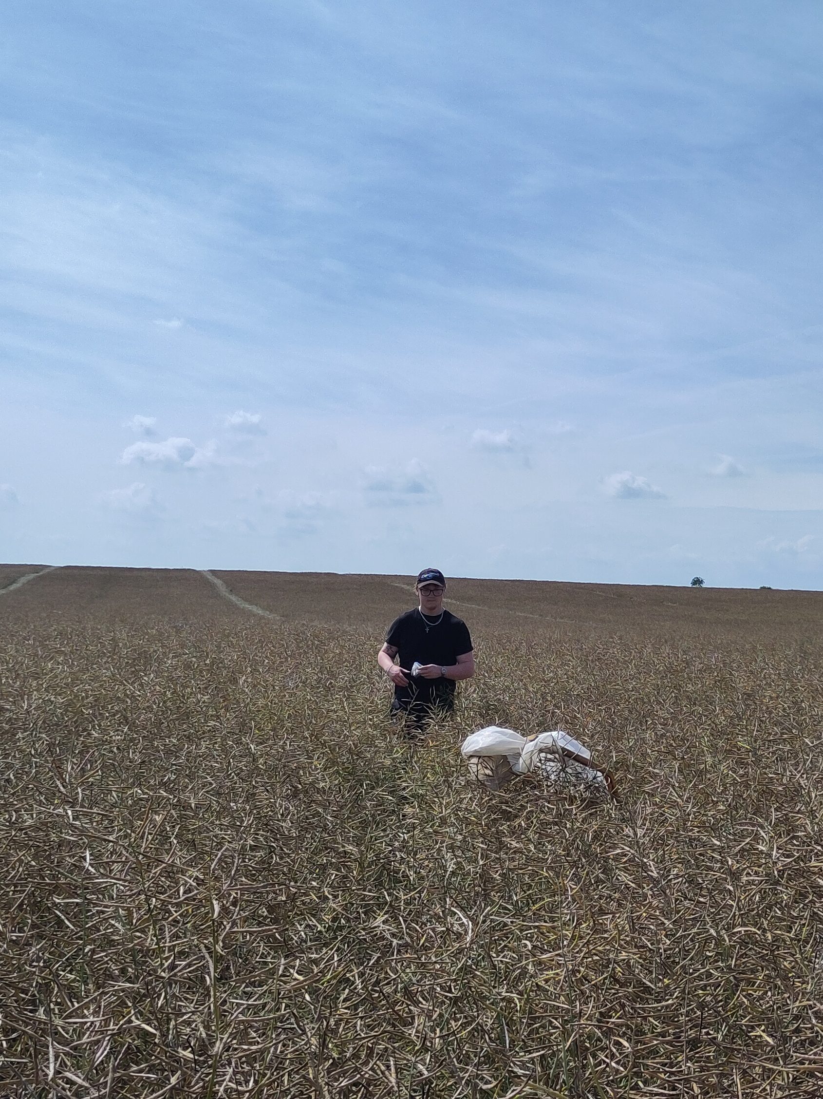 Jordan has also been out in oilseed rape fields at Newcastle University’s Nafferton experimental farm along with BSc student Ali to investigate the impact of distance from field margins on ecological interactions. As always, being in the field was an inspiring way to witness and contemplate the complexity of the natural world, including some incredible webs in the canopy of the late-stage crop which were lined with various pests and predators.