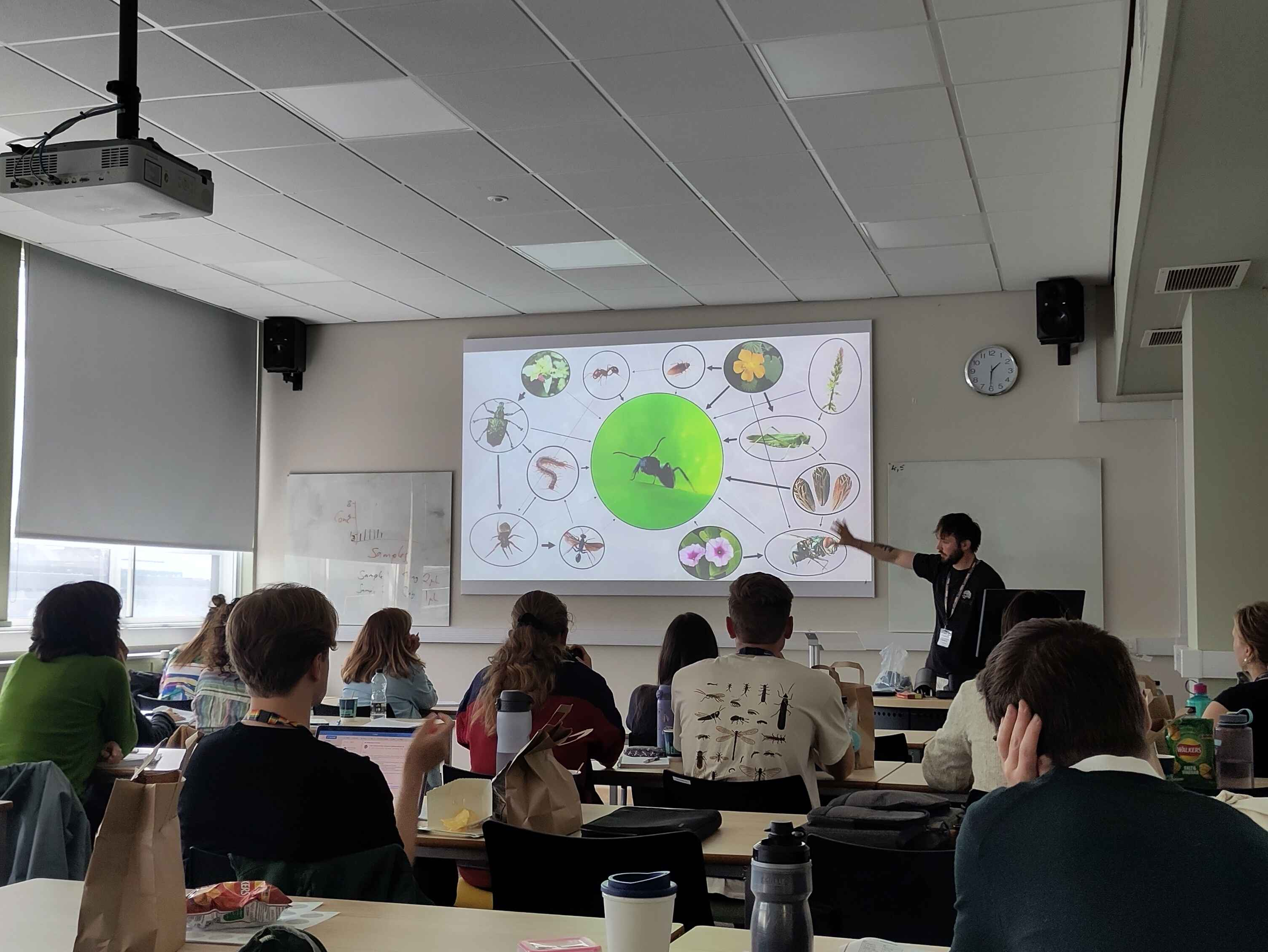 The workshop was primarily structured around the lab protocol, starting off with sample lysis and quickly progressing to PCR in day one. Day two then involved digital electrophoresis (using our Qiagen Qiaxcel), pooling based on the Qiaxcel output to achieve equimolarity and, following a bead clean to remove primers and enzymes, the Oxford Nanopore Technologies Ligation Sequencing Kit. Between these steps, alongside coffee breaks (featuring national cake icon Colin the Caterpillar), we had two lunchtime seminars to go through some of the more conceptual challenges involved. On the first day, Jordan gave an overview of some of the conceptual limitations of dietary metabarcoding and some of the challenges involved in merging it with observational data to construct ecological networks (based on a 2022 paper he led in Methods in Ecology and Evolution). On the second day, we were joined by Max Tercel, who gave a talk about the ‘problem of omnivory’ and some of the challenges involved in dietary analysis of omnivores using metabarcoding (based on a 2021 paper he led in Molecular Ecology).