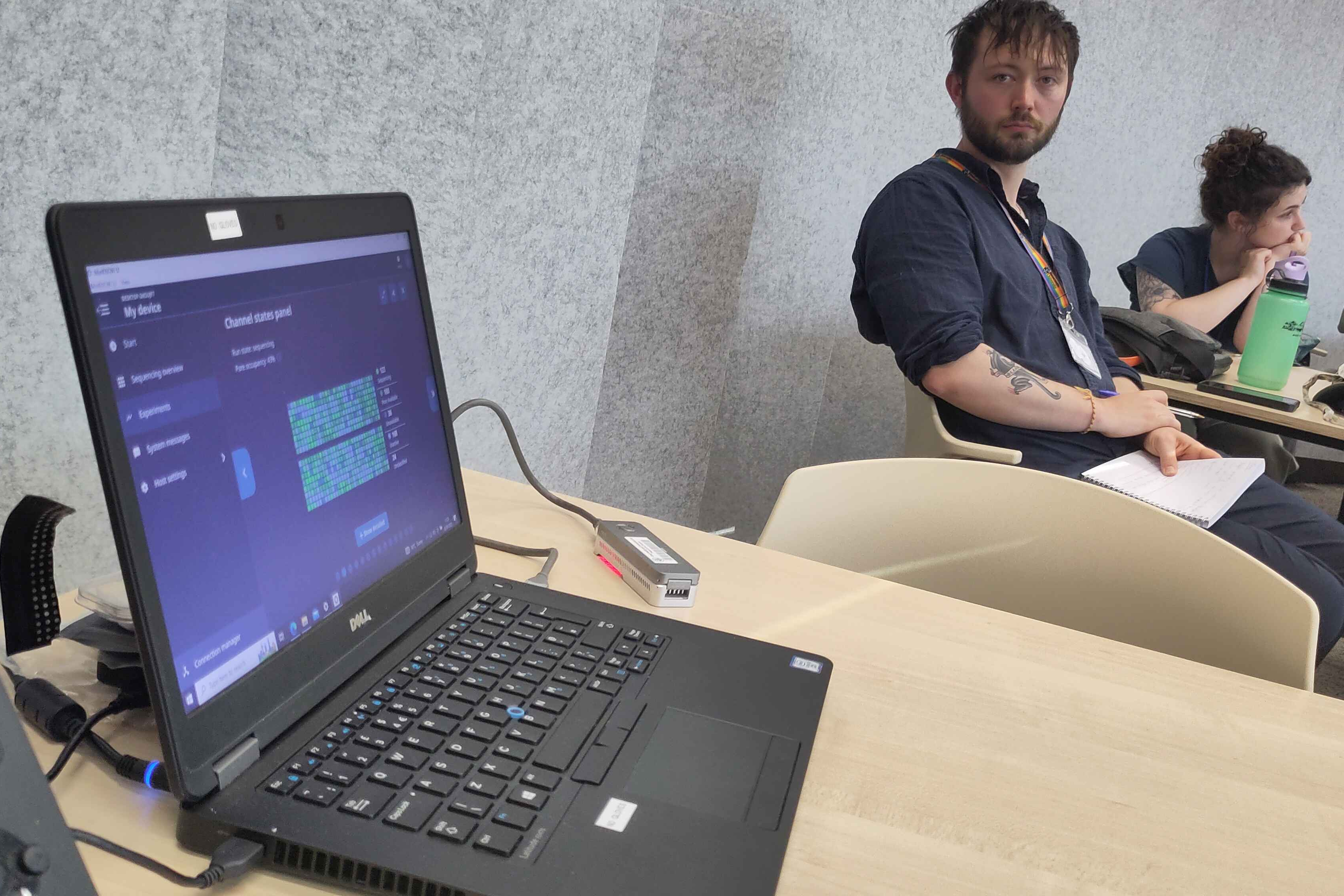 It was an ambitious plan with little room for error, simply because of the conference schedule that it led directly into, but it all went brilliantly with only a couple of minor hiccups throughout. On the Wednesday, immediately before the conference proper began, the workshop team loaded the DNA into a MinION sequencer in the symposium lecture theatre, allowing everyone to keep a close eye on the outputs as the conference progressed. Many of the wider delegates came to take a peak too, given that it was a fairly unique quirk to the conference and relevant to several of the talks across the sessions.
