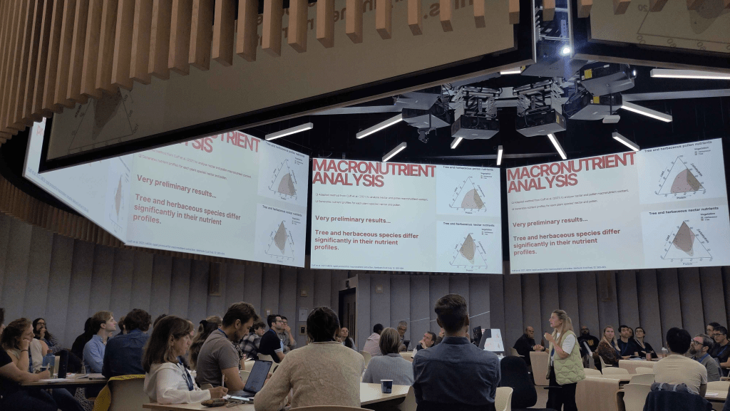 As always for EcoNet, talks ranged from the theoretical physics and maths underlying ecological networks, through to the ecology itself and how ecological networks differ across space, time and other contexts. We had an excellent talk from our very own Bea Dale about her tree flower-pollinator networks, including her work constructing nutritional networks across time using her massive dataset of pollen and nectar nutrients! The incredible quality of Bea’s talk was demonstrated by her winning the best talk award! Well done, Bea!