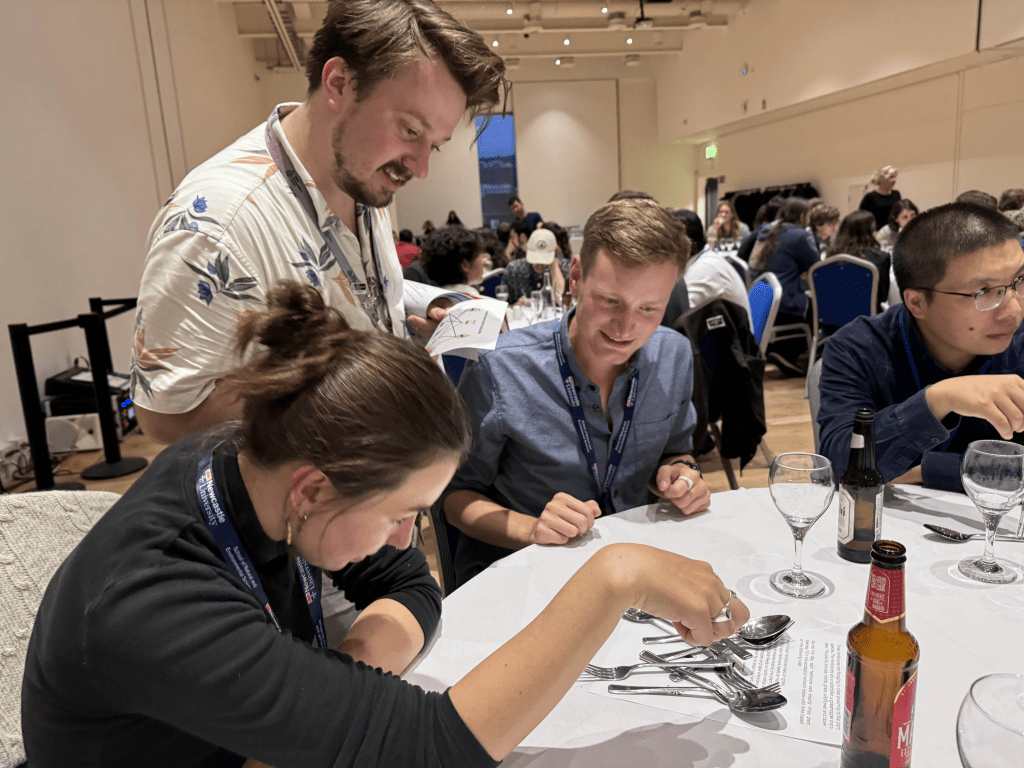 For the conference dinner, hosted in our wonderful Great North Museum: Hancock, Jordan put together a few new network logic puzzles (which you can see examples of in our September and June FERG news posts). These were met with everything from unmitigated enthusiasm to mild rage (mostly because a couple had a secret second solution), but kept conversation alive across the room! We had some really innovative approaches to solving them, including a glassware and cutlery recreation of one of the networks. Some of the better ones may make an appearance in future FERG news posts!