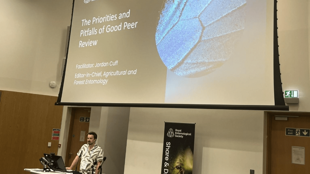 Why stop at one conference? A few of us also headed to the Royal Entomological Society’s Ento conference in Glasgow! Rosy completed the second leg of her poster’s world tour (whilst balancing duties as an RES Student Rep)! Wearing his Editor-in-Chief of Agricultural and Forest Entomology hat, Jordan also ran a Peer Review Workshop at Ento which took attendees through the pitfalls and priorities of peer review, with input from other Royal Entomological Society Editors-in-Chief, Associate Editors and Editorial Board Members. This involved running through some real (openly published) reviews from his papers and then tasking attendees with peer reviewing some mock papers!