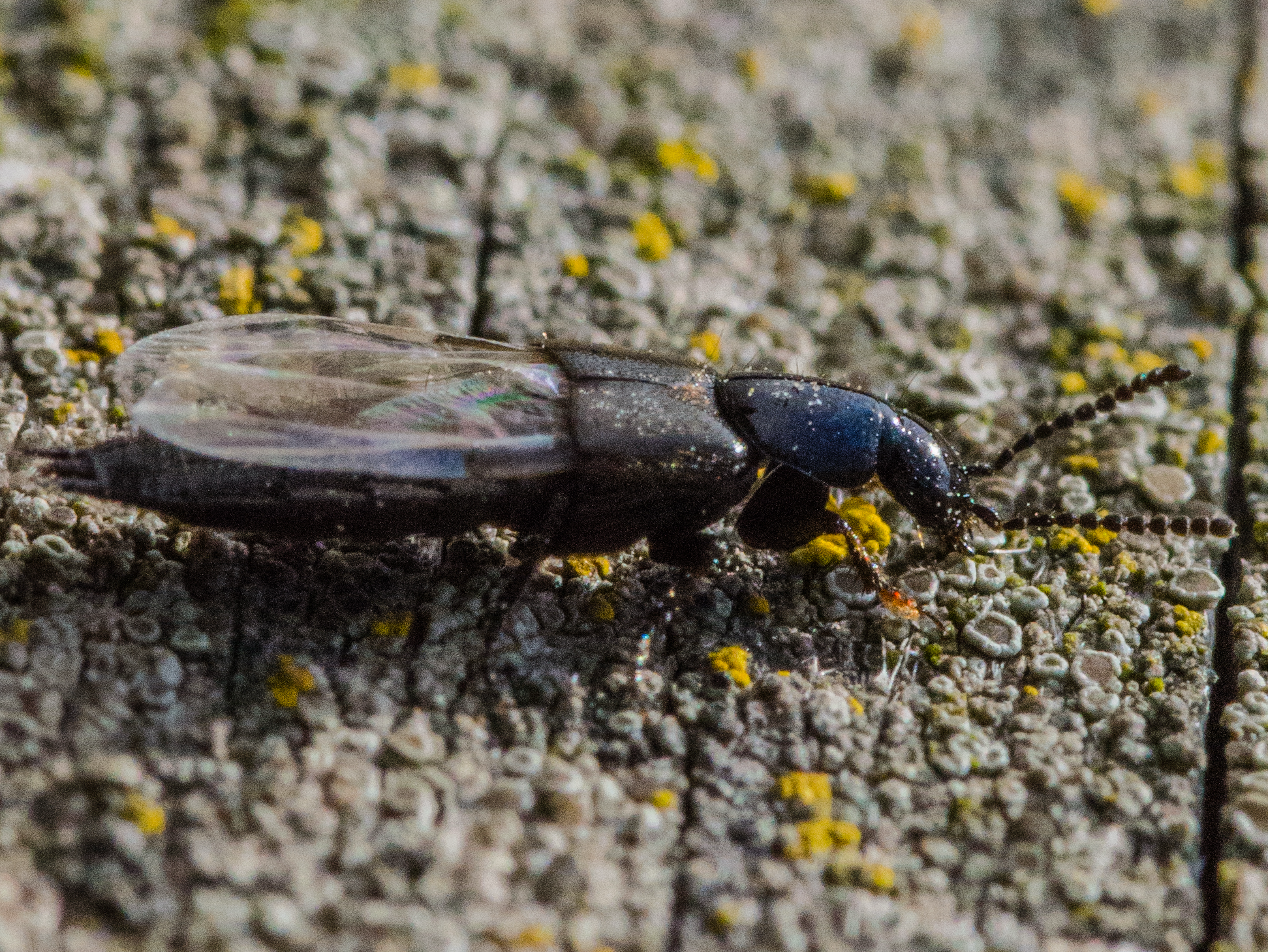 Our taxon of the month is the beetle family Staphylinidae – the rove beetles! Mia has been getting stuck into identifying them from her last field season, so we’ve been talking frequently about how cool and beautiful they are! These beetles are most easily identified by their truncated elytra or wing cases, which fail to cover the abdomen the way they do in most beetles. With over 66,000 species though (making them one of the most diverse beetle groups), rove beetles vary markedly in their morphology and ecology. Their diversity is perhaps exemplified by the fact that they are found in every habitat type known to contain beetles and different species differ so markedly in their diets that, as a group, they are thought to eat every broad type of resource. The best known species, at least in the UK, is certainly the devil’s coach horse (Ocypus olens), which was considered the frontrunner among animals that might draw Satan’s coach in folklore. It’s best known these days for being sizeable, widespread and super cool though.