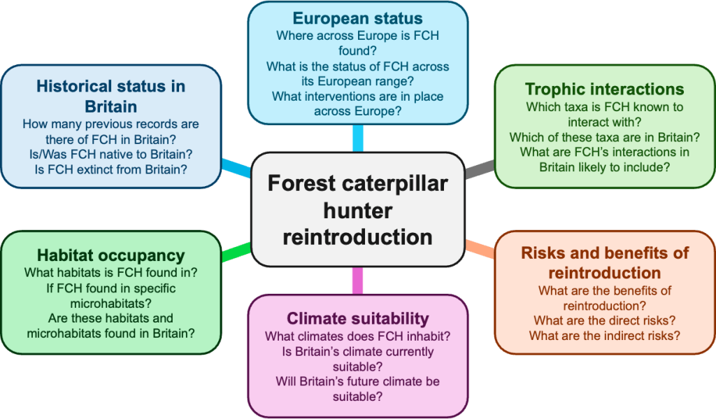 We ultimately suggest that translocation of FCH populations to Britain can be based on the cautious assumption that it is a reintroduction following national extinction, likely due to poor prey availability. The biocontrol of various pest species by FCH, including OPM, is likely, and the suitability of Britain’s climate may increase over time. Reintroduction could help manage OPM whilst also returning an important invertebrate predator to British forests. Further evidence of the wider direct and indirect interactions of extant FCH populations elsewhere, and deeper investigation into FCH’s habitat requirements, are, however, required to safeguard the success and sustainability of prospective reintroduction.