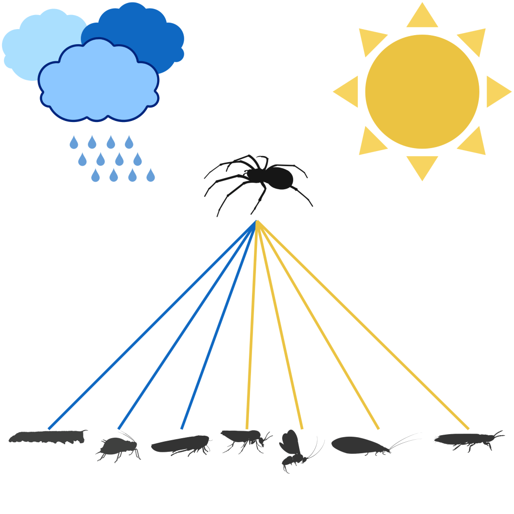 Cuff (2023). Rain or shine, spin and dine: unravelling how weather shapes spider food webs (and silk webs). Ecography Blog.